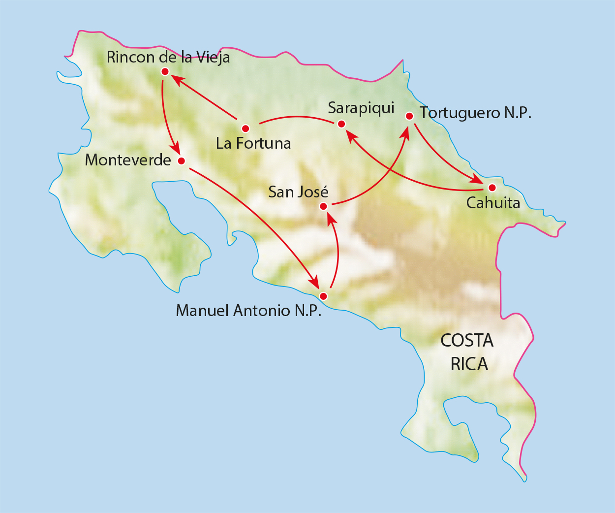 Tijdens de reis maak je gebruik van een eigen bus (meestal een zgn. coaster) met airconditioning. Als je naar Tortuguero reist, zal een gedeelte van de route per boot plaatsvinden. De boottransfers worden gedeeld met (internationale) reizigers. De bus staat niet ter beschikking van de groep op de vrije dagen in San José en Manuel Antonio N.P.