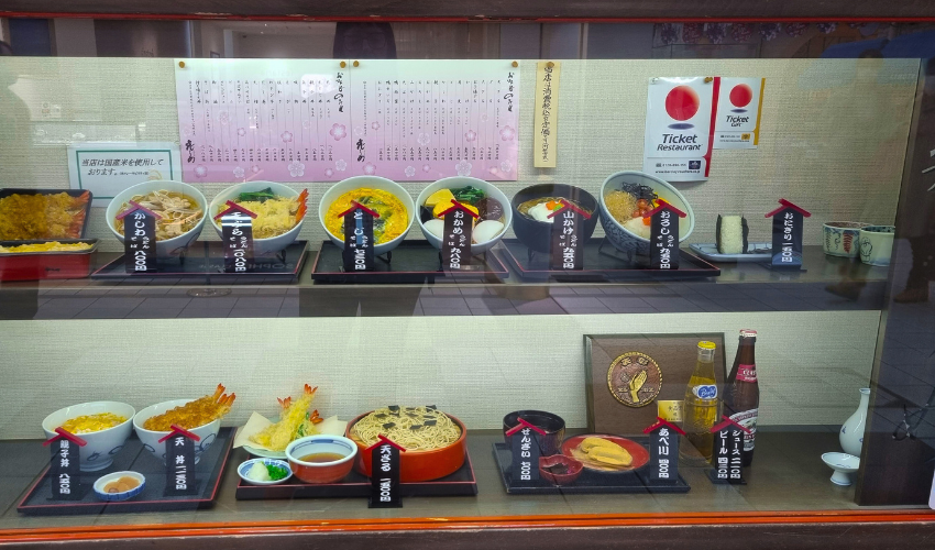 2. In de etalages van de restaurants staan voorbeelden van nep eten, ter illustratie van wat je allemaal kunt bestellen. Dat is zó echt nagemaakt dat het ook echt lijkt. In Tokio is er een eetstraatje waar je dit nep eten kunt kopen, zelfs met stokjes die boven je bord zweven. Ik vond ze zo leuk, dat ik ook een bordje eten heb gekocht.