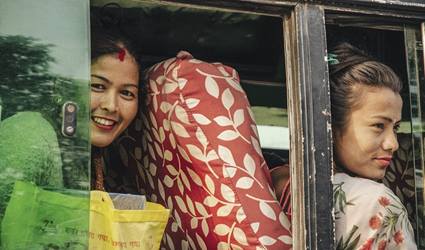 Ik kijk recht in de harige bilspleet van een man die diep door z’n knieën is gezakt om zijn koffer tussen een berg bagage te zoeken. Hij draait zich zuchtend om en nu kijk ik pal op z’n rode tika, de kleurdot op zijn voorhoofd. Ik lach, want hij heeft mijn reistas uit de hoop gehaald. Wanneer ik de luchthaven buitenwandel, valt het op mij: het stoffige, okergele licht van Nepal. Alle taxi’s rijden Kathmandu in, maar wij laten de hoofdstad met zijn dikke elektriciteitsknopen en shops vol donsjasjes en bergspullen achter ons, en gaan naar het verre westen. Daar waar bijna niemand naartoe gaat.
