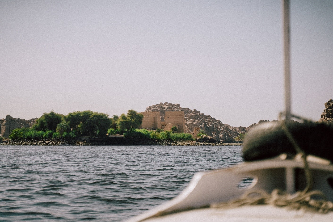 “Hé kijk, daar een tempel!” We wisten dat we naar een tempel gingen, maar niet dat we hem van hier al zouden zien. Ik hou van diepte in een beeld en vooral van een verhaal. Ik heb bewust wat van de boot mee in beeld gebracht zodat ik echt het verhaal van onze trip naar de Philae-tempel kon vertellen. Dit was de eerste tempel die we bezochten na ons avontuur op de nachttrein, en hij stelde niet teleur. Tijdens het varen duikt deze tempel ineens op en wordt hij groter naarmate je dichterbij komt. Eens op het eiland is het genieten van deze prachtige plek, maar vooral de tocht ernaartoe maakt deze tempel zo speciaal.