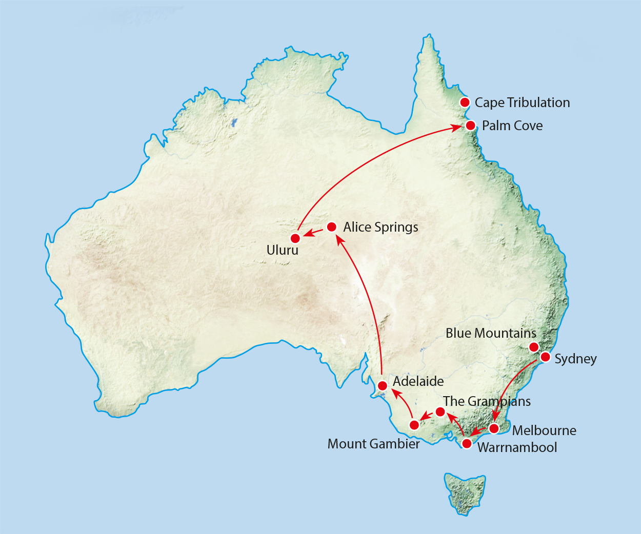 Meer informatie over het vervoer en de reisafstanden in Australië kun je terugvinden onder het tabblad 'Meer reisinfo' bij de reis.